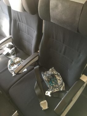 Since this was just a three-hour flight, no bedding, sleeping pillows or blankets are loaded into the cabin (which makes the cabin look more clutter-free). The cabin was filled to the last seat, including a little toddler just in the seat next to me. Despite the parents' efforts, that little guy would be shrieking loudly almost non-stop for the next 4 hours. Talk about a happy flight!