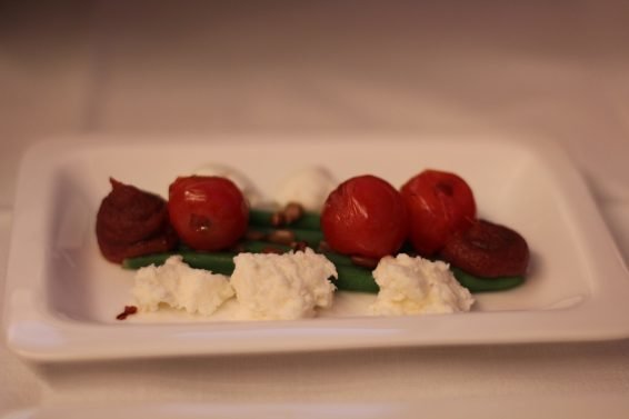 Dinner service started rather quickly, first with drinks (again, I chose the champagne which I did not like so much) and then the appetizers rolled around. I was NOT a fan of the appetizers - they were salty and had no taste.