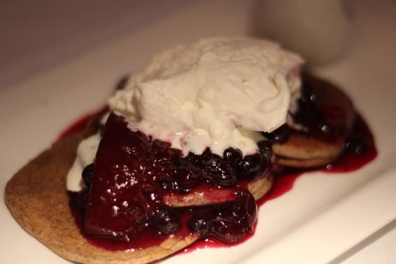 I had casually mentioned earlier that I'd like the pancakes from the menu and I was up for a few minutes before Alfred came by, prepared my table with a fresh smoothie, yogurt and granola and asked for permission to serve the pancakes (yes, he did remember the conversation).