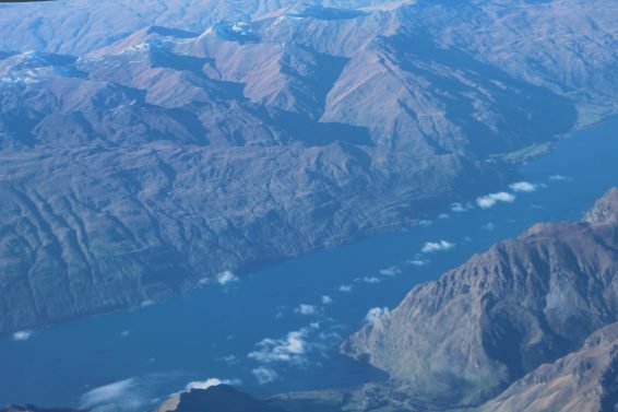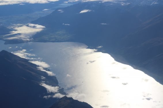 Since Queenstown Airport is typically approached from the south, you get wonderful scenic views over Milford Sound and the mountains to the west and southwest. The last 20 minutes of the flight was just fantastic, with the snow-capped mountains giving way to the crystal blue lake.