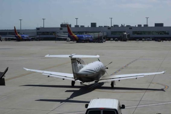 Boutique Air operates a fleet of Pilatus PC-12 aircraft and while it looked especially dirty, it also looked like an angry locust amidst all the 737s at Oakland Airport.