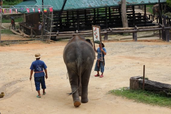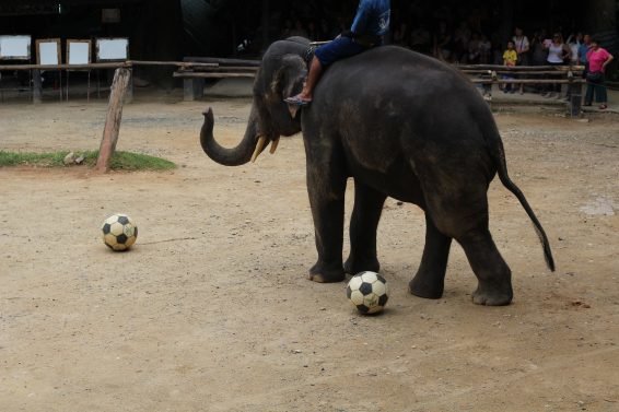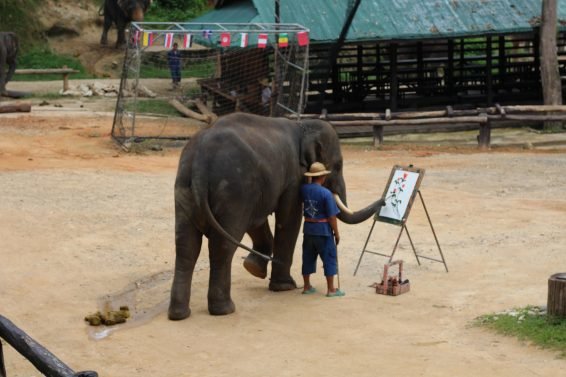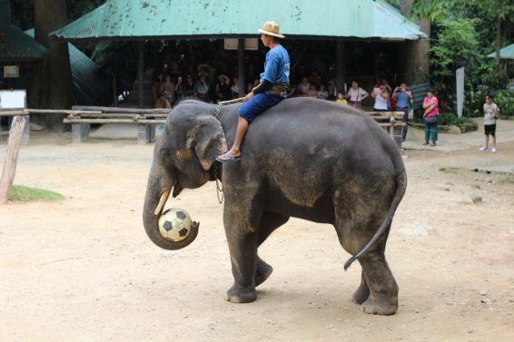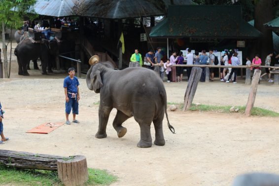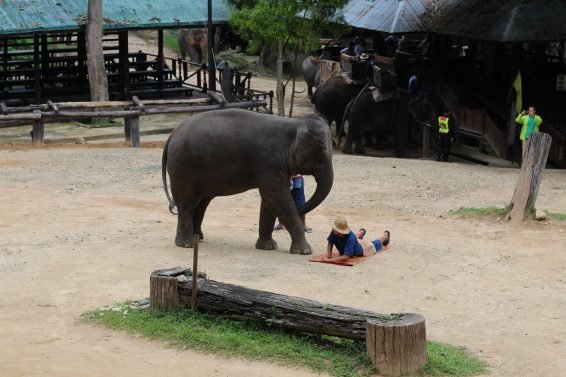 Almost 300 visitors joined the show at the camp in Maesa Valley that we joined at 9.30 AM. The elephants and their training are nothing short of impressive though. They are massive, highly intelligent beings that excel at such surprising skills as painting, playing musical instruments and soccer.