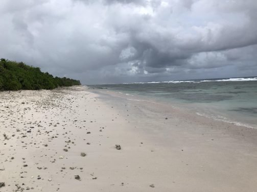 As with most of the Maldives, natural beaches are rare. Typically, the island just comes out of the water with a minimal mix of hardened corals and sand. The biggest issue is the shallow water depth—the corals grow right along the island. That makes it hard to just go for a swim because the coral depth is unpredictable. Beaches in the Maldives are typically man-made.