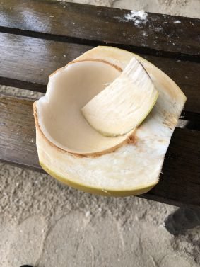 All along the waterfront, you will see these makeshift coconut bars that usually serve snacks, fruits, and fresh coconuts. Coconuts grow all over the island and this wonderful treat is just 50 cents.