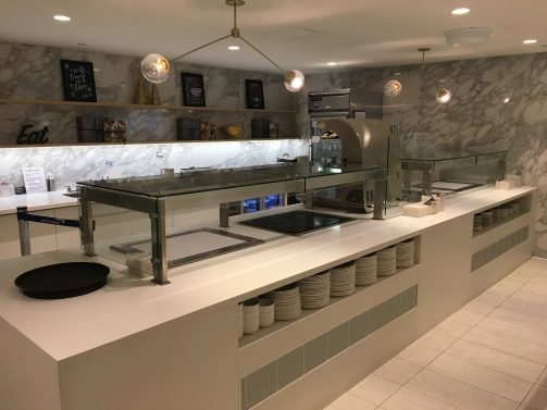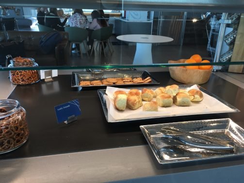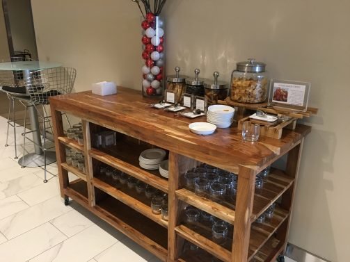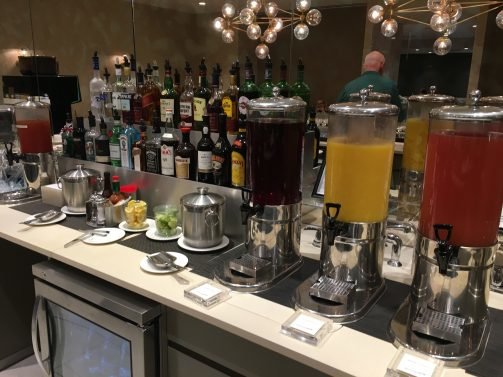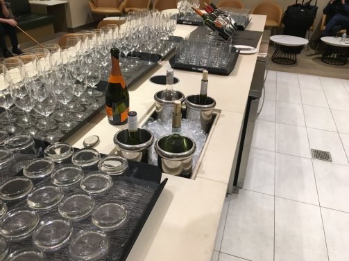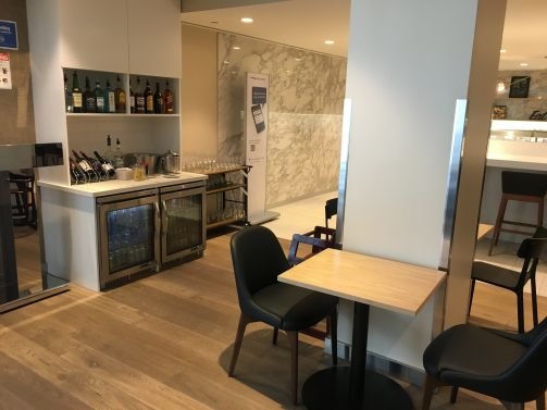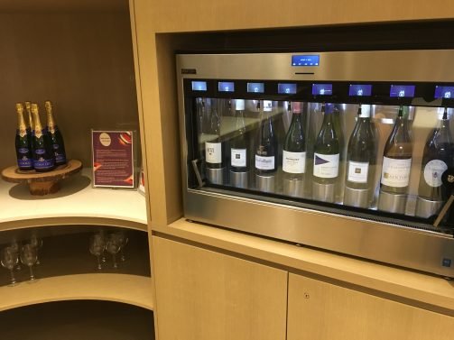 The lounge itself is beautiful with a lot of seating and many alcoholic options including a wine tasting bar similar to the American Express Centurion lounges setup. However besides potato chips, stake fruits and one lone sandwich there was indeed no food until 4.30 PM (the scheduled boarding time for our flight).