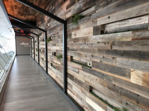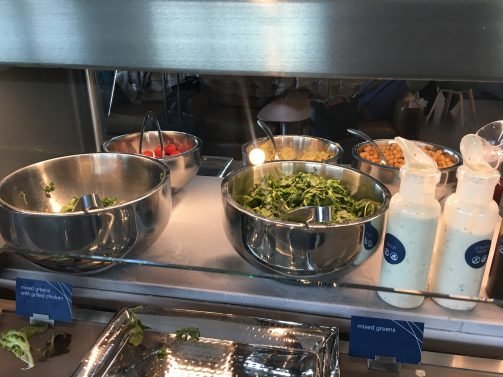 That was a great move as this is a beautiful lounge - much above anything I have ever seen from Alaska. It has a beautiful view over the apron and comes with a number of healthy and yummy options like chicken salad and greens. There are a number of made-to-order dishes under $10 that are similarly healthy and tasty. There is a also a full service bar and a barista making enormous espresso drinks.