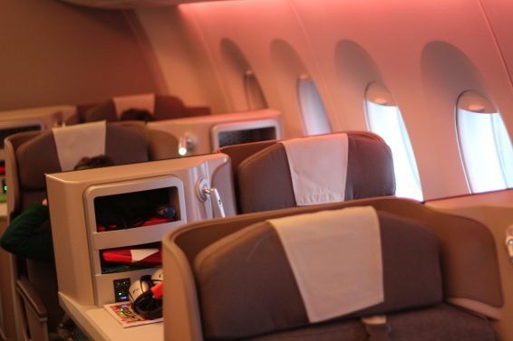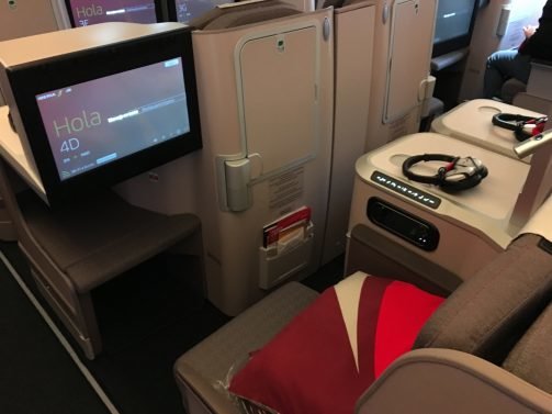 The cabin was almost full already with mostly 'post Christmas family travel' (indeed half the passengers were under 18). The new A350 Business Class seats offer a lot of privacy and space (we both had an aisle seat). The seats is an evolution of the Business Class seats you can find at Etihad. However it is wider and more ergonomic.