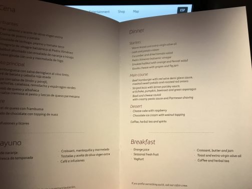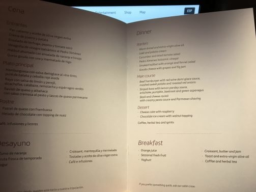 Breakfast rolled around at about one hour outside Madrid (11 PM body time) with full lights and quite some noise. It wasn't any better though :(