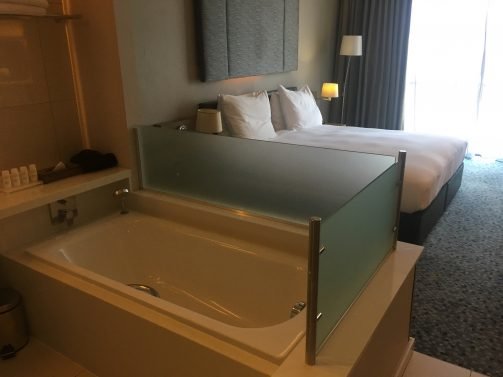 I struggled with the room key so I recruited the concierge to open the door for me (the card goes in the opposite way of what any other hotel wants you to do). The room was large but not luxurious. I liked the big bathtub and well working rain shower.