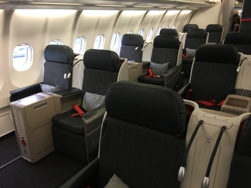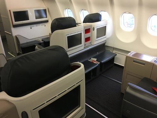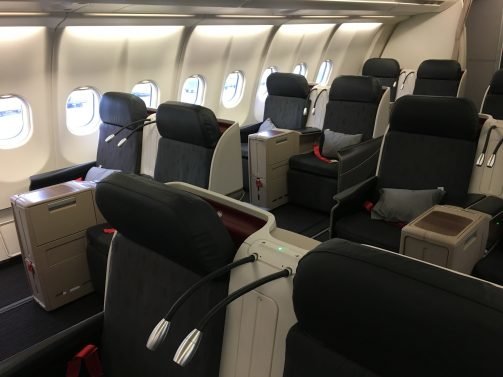 The connecting flight boarded at 1.30 AM via a bus gate (as usual) and was the same plane configuration we had just flown as a private plane. It was just 50% full that night.