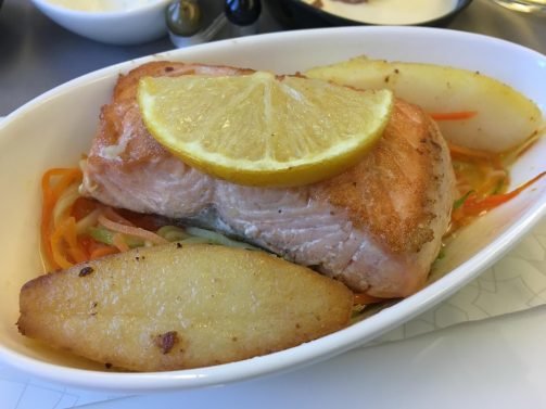 This dinner was quite a highlight with an amazing fish that would make many restaurant chefs proud. Our on-board chef was in a jolly mood and greeted passengers in 6 different languages.
