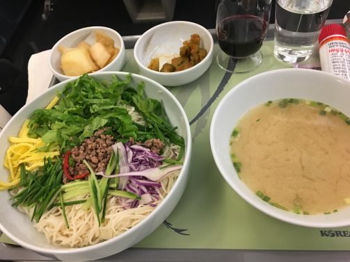 Service started quickly again and my appetite for Korean food was not filled yet. Again I liked the entree a lot - it seemed fresh and of high quality and I also loved my dessert and the wines that came with the meal. I really felt the quality of the catering was above Cathay Pacific or even Japan Airlines.