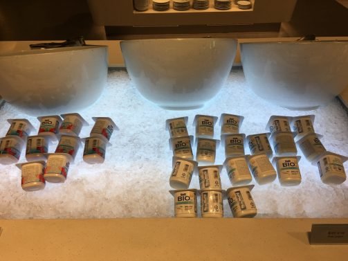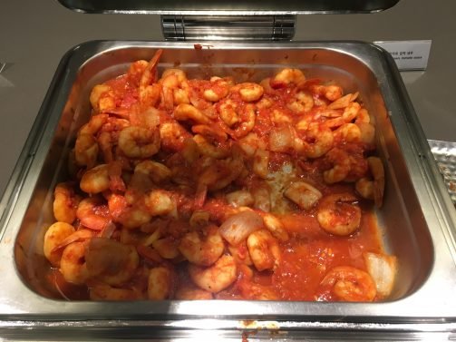 After some good rest I returned to the Korean Air lounge (there are two of similar size) in the new Terminal and was hungry. There are two different dishes served - I found the spicy chicken dish edible though not great. I was thirsty too but the only water available were 3 ounce packages of water. It'd go through 20 of them in a few minutes.