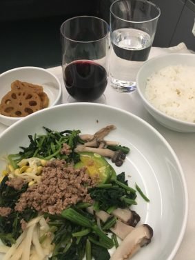 I chose the Korean entree and loved the fresh salad. Likely the best salad I had ever on a plane. The leaves were perfectly washed and crisp. The dressing was a lemon/ olive oil dressing - small but beautiful.