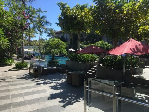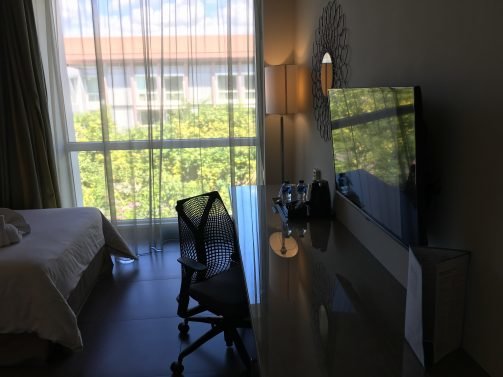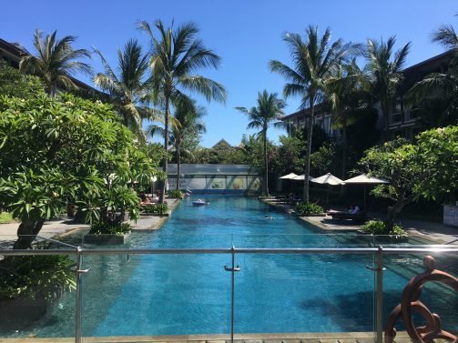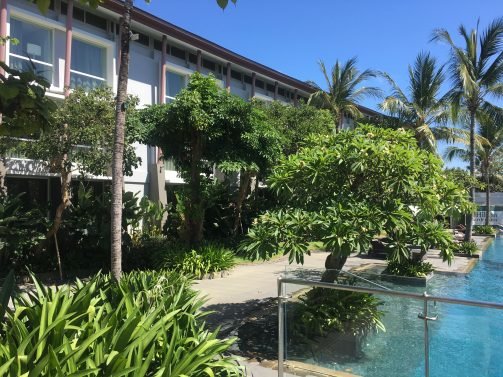 The Hilton Garden Inn Bali is in walking distance from the International Terminal at Bali International Airport. While there is a hotel shuttle you can easily walk 15 minutes to the hotel. However make sure you know how to repel aggressive stray dogs at night.