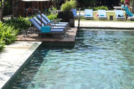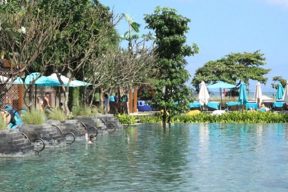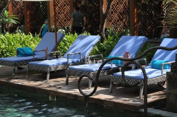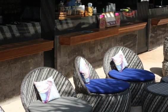 Just beyond the pool is the wonderful Seminyak beach which is a huge plus for the resort. Few resorts have such beautiful beach access. There is a small area with benches and beach chairs for hotel guests.