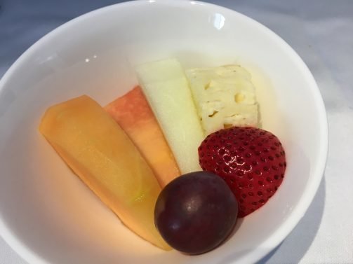 Unfortunately, just 30 minutes outside we got into some major monsoon clouds even at 43,000 feet and got badly shaken for about 90 minutes. The crew did their best to 'dance through it' and bring out food despite the precarious shaking.