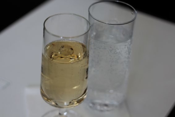 After that adrenaline rush, we settled in for a westward (and surprisingly southern) route. It took a solid 2.5 hours until any appetizers came out. By the time the cart came to me, no nuts were left. However, the champagne was excellent.