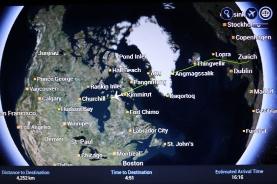Our cruise was rather uneventful with no turbulence to speak of. I tried to find some sleep. The seat back reclines 100% and forms a fully flat seat. However, it is rough to turn as space is limited for that. Eventually, I found a way to stretch out completely but still find it too narrow. After a few hours of solid sleep, the toddler next to me decided to keep everyone awake with a high pitch shriek every 5 minutes. It was always short but VERY alarming to a parents (and everyone else's) ear. I decided to watch a movie and liked the responsive entertainment system. I rarely use more than the flight map but found it to be easy to use.