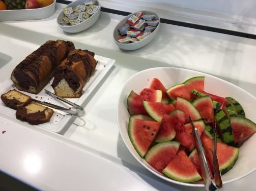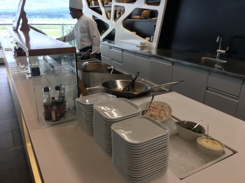 I was hungry and stopped by the hot buffet - to my surprise it was only cook-to-order and the sole chef had built up a solid line of 20 passengers waiting for lunch. The lounge had plenty of seats and was easily planned for 200+ people and the many Swiss departures around that time - but just one chef and lounge attendant?