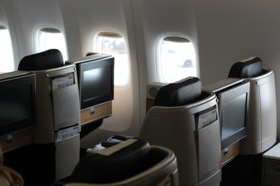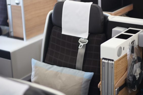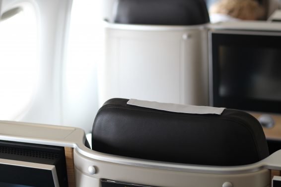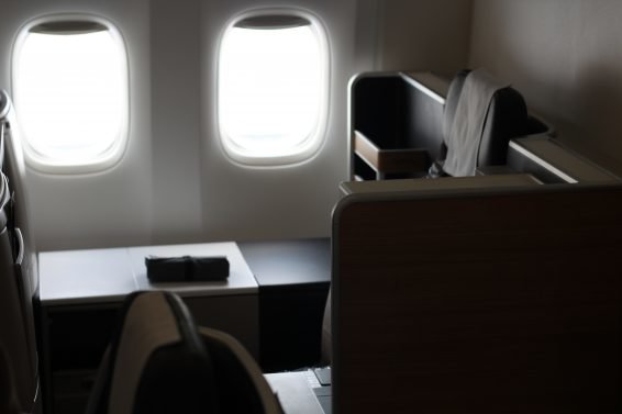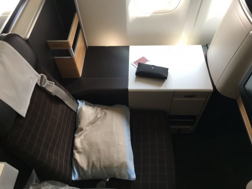 I had selected a single seat on the left that got me out of the aisle and had two 'foot rests' from passengers behind me to right and left. These seats seem to be by far the best for single travelers. The seat itself is not as wide though and delivers less space than the 'Cathay Pacific Mini suites' - still my gold standard for Business Class (after so many years).