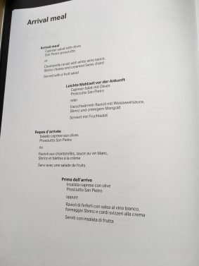 I had a number of short interactions with the flight attendants and they seemed jovial, friendly and fluent in German, English, and French. They seemed to struggle with a full load of passengers and it seemed much less of a 'well-oiled machine' than you would expect from Switzerland.