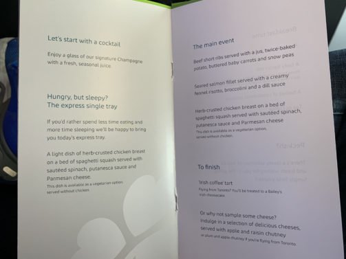 Dinner service came out quickly and I was surprised how good the quality of appetizers, main course and dessert were. It was very solid airline food - certainly on par with a decent restaurant.