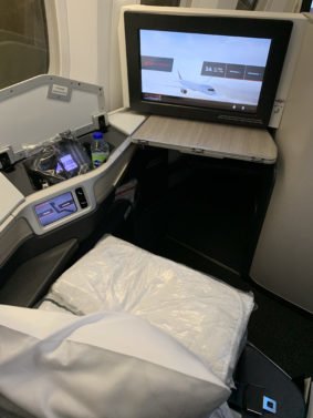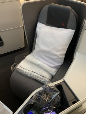 To my surprise, the seat would not recline fully but instead stop at about 165 degrees angle. I was shocked - why go through all that trouble and install such beautiful seats that take (almost) as much room as lie-flat seats but not let it all flat?