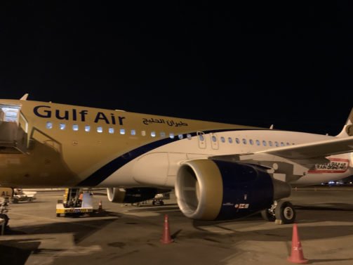 Boarding for my GulfAir flight was called right on time and the lounge attendant escorted us through yet another security check (though we had just taken the very same security check a little earlier). There is a final immigration check and the officer was a bit confused about why my passport wouldn't bring up a big green box. However after mentioning the word 'Transit', he seemed satisfied.