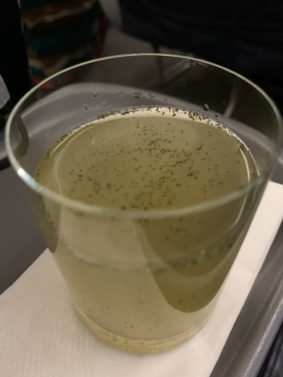 The GulfAir A320 seemed to be in mint condition and the Economy was seemingly 100% full, but just two passengers (incl. me) would fill the 12 seats in Business Class. The flight attendants came by with non-alcoholic welcome drinks shortly. There were also the Arabian dates and coffee service which is surprisingly good.