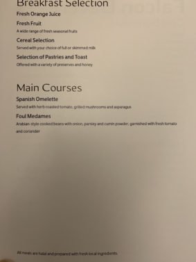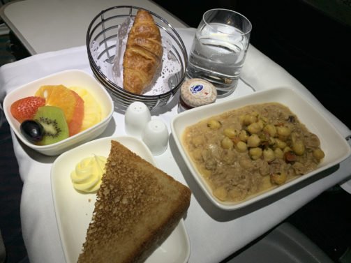 The flight attendant took orders for the dinner/ breakfast dinner service. I went for the Arabian version of the Foul Madames. It came up just 15 minutes after take-off and it was delicious.