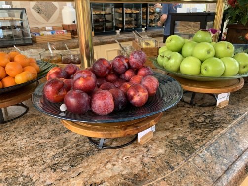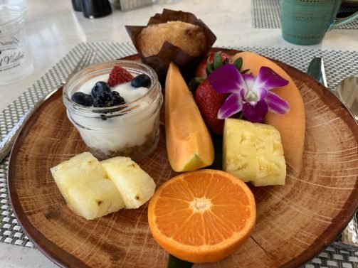 The resort offers a complimentary (one plate) breakfast for Hilton Diamonds in the breakfast area. You do not get to choose any items from the buffet but are presented with a set plate. I found the options of very low quality - no Starbucks would get away with it (I'm not a fan of the Starbucks pastries at all).