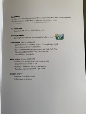 I was happy lunch would be served instead of breakfast (usually miserable on a plane). I selected the vegetarian options from the menu. They sounded quite delicious.