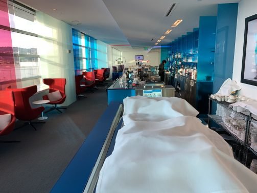 I used the Virgin Atlantic lounge at San Francisco airport (a review from a prior flight). It still impresses with wonderful interior design, especially on this sunny morning. However, the breakfast spread isn't great or high quality. With just 4 passengers in the lounge, it still felt like First Class!