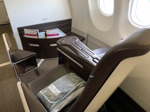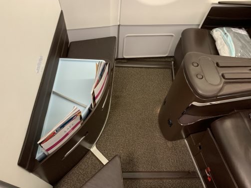 That turned out to be wrong - once the seat folded to a 180-degree flatbed it was very spacious and I had no trouble stretching out. I'm quite tall and like to turn a lot when sleeping but this seat was perfect. For this and the 'weird' ottoman came out to shine. In fact, I felt it was a spacious as any Business Class seat - more equal to Cathay Pacific Business Class seat (still my favorite).
