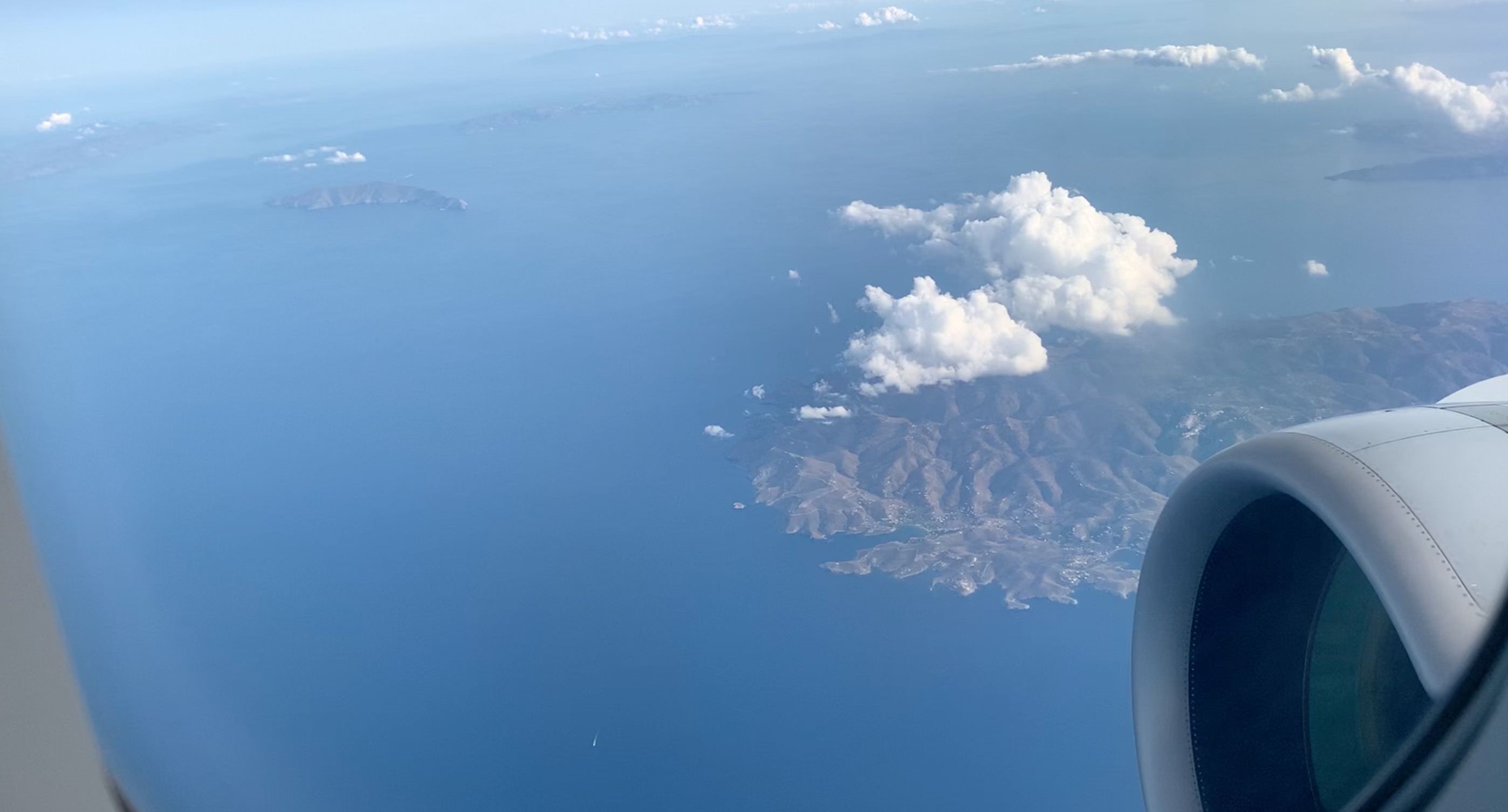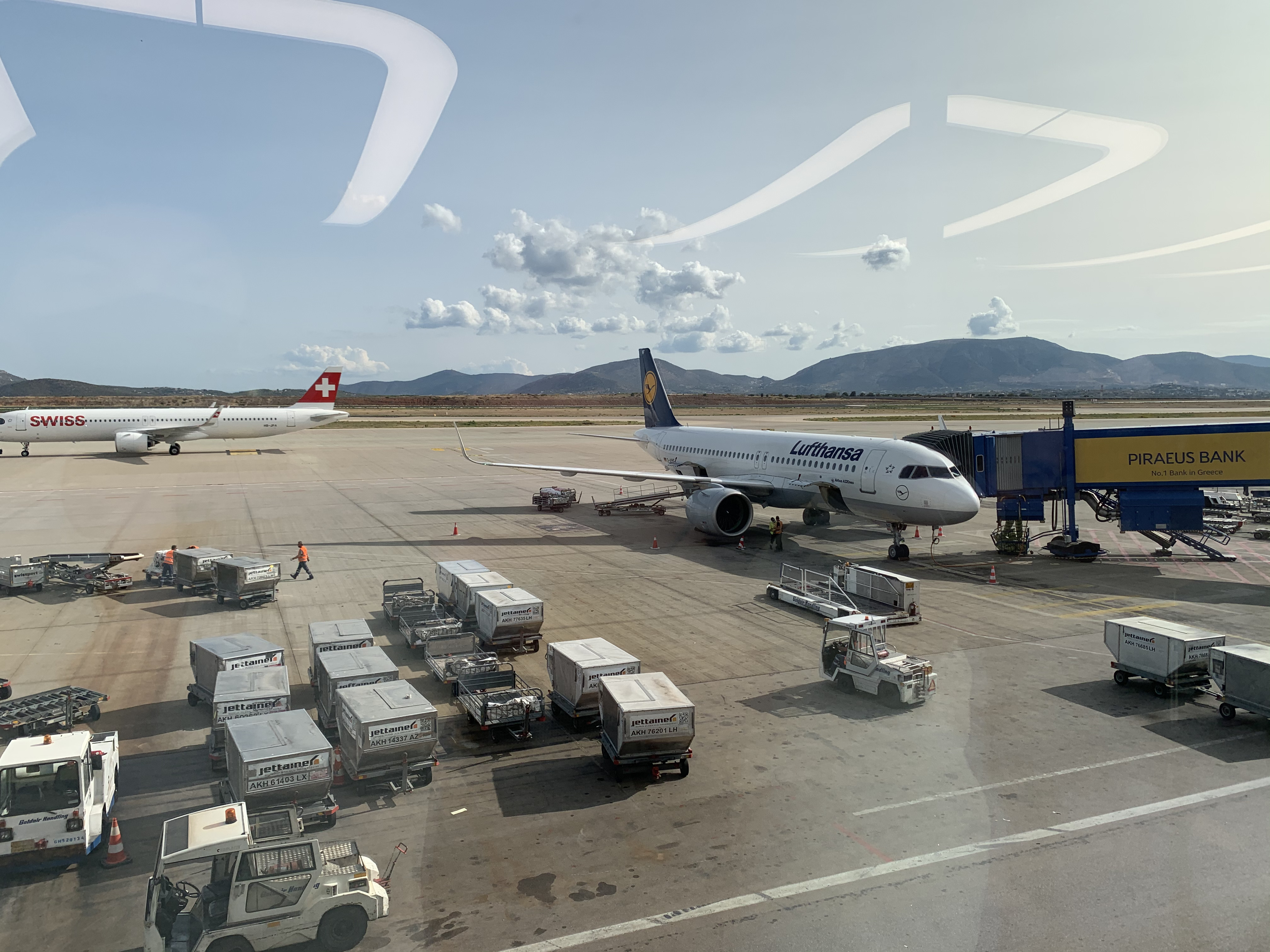 After a productive few hours at the Lufthansa Business Class lounge in Athens I made my way to the gate - only to realize that departure would be a good 35 minutes late because deplaning from the arriving plane was just happening while boarding should have started. Athens airport was rather crowded despite COVID but most planes now operate on time (given the little traffic there is left).