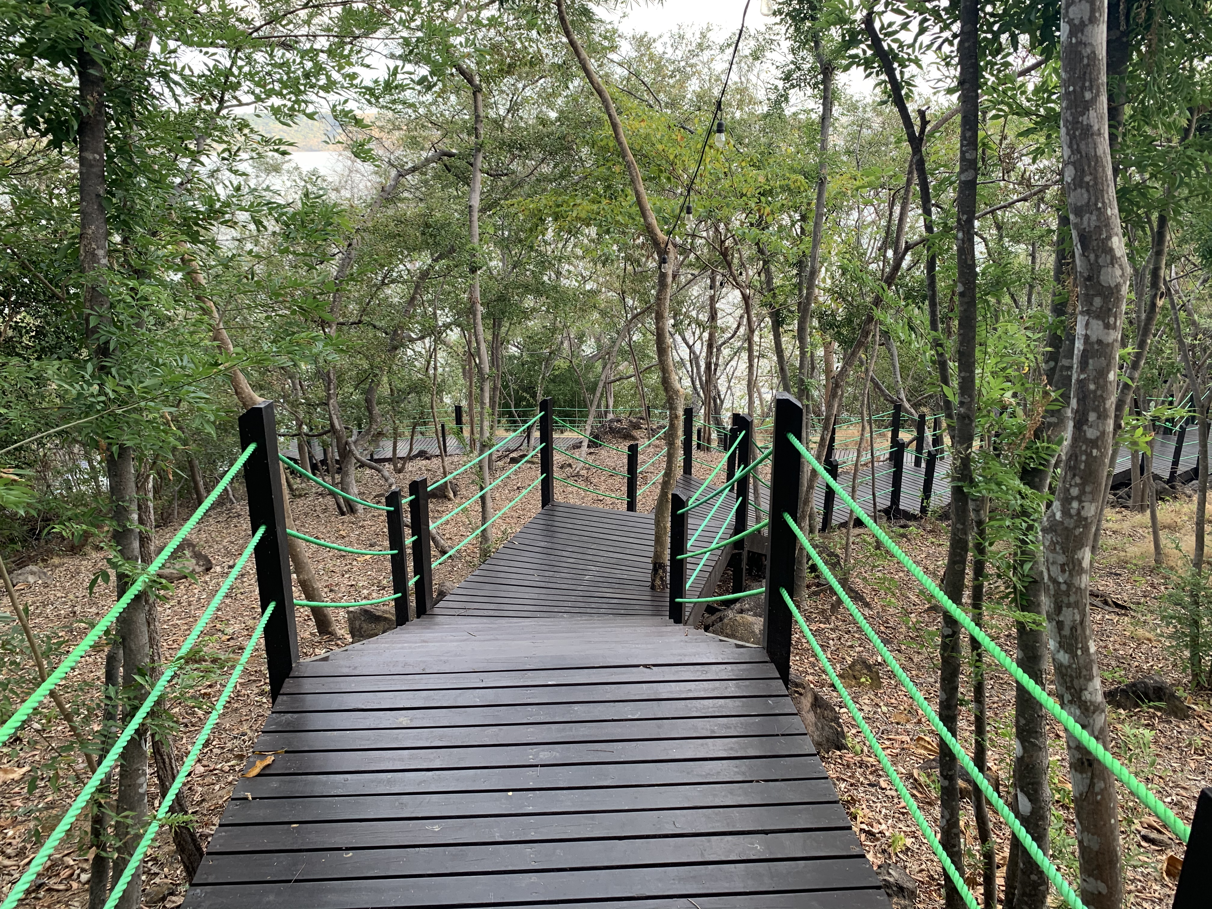 The property comes with steep hills and getting to the beach is indeed a workout. It is a 20-25 minutes walk (even down) through the jungle. There are two beaches (one offers a number of complimentary activities such as paddle boarding). Both beaches seemed artificial and had been built by removing mangroves and adding sand. The water is clear though and it is fun to take a quick dip but you don't want to spend too much time there.