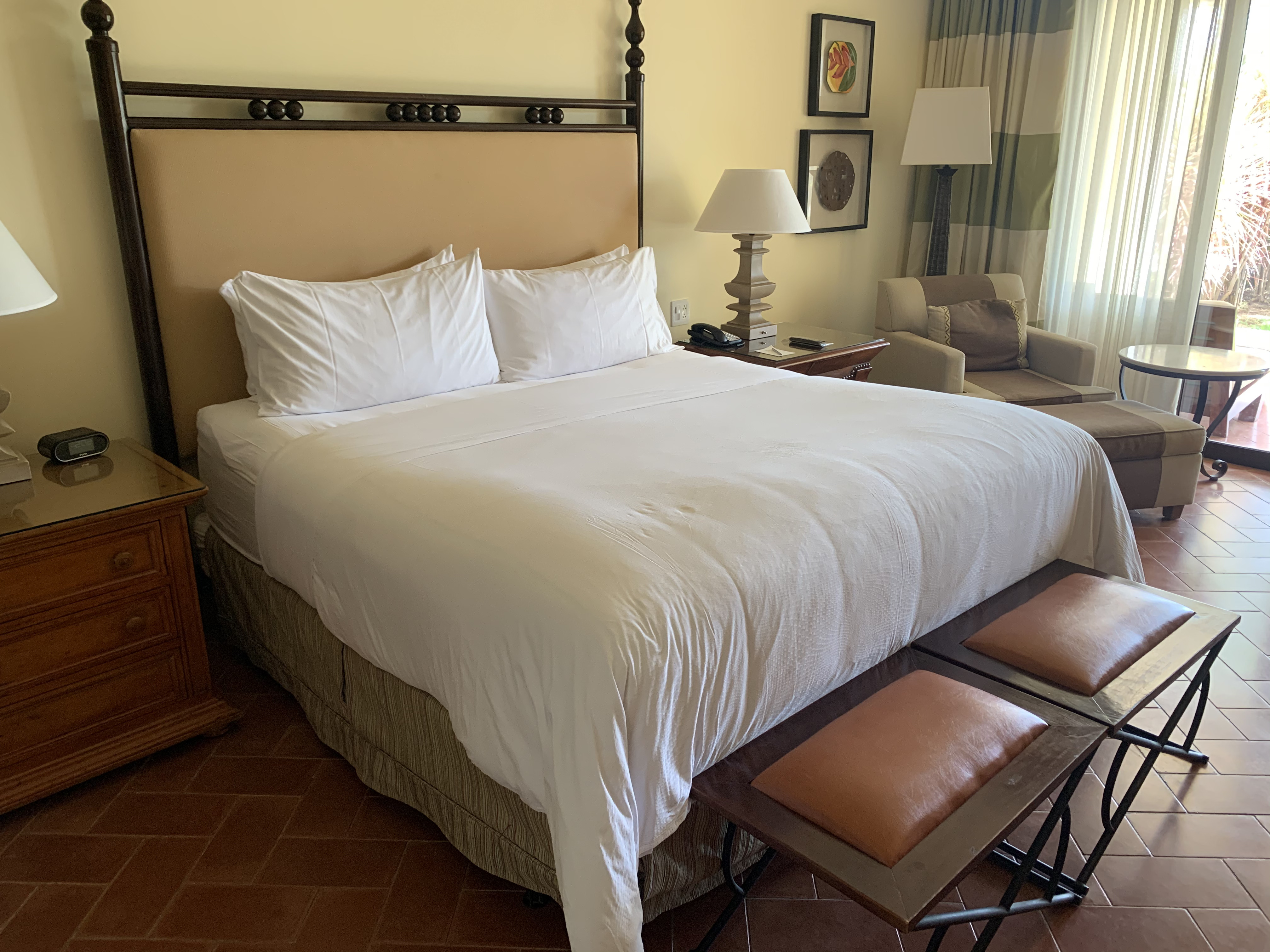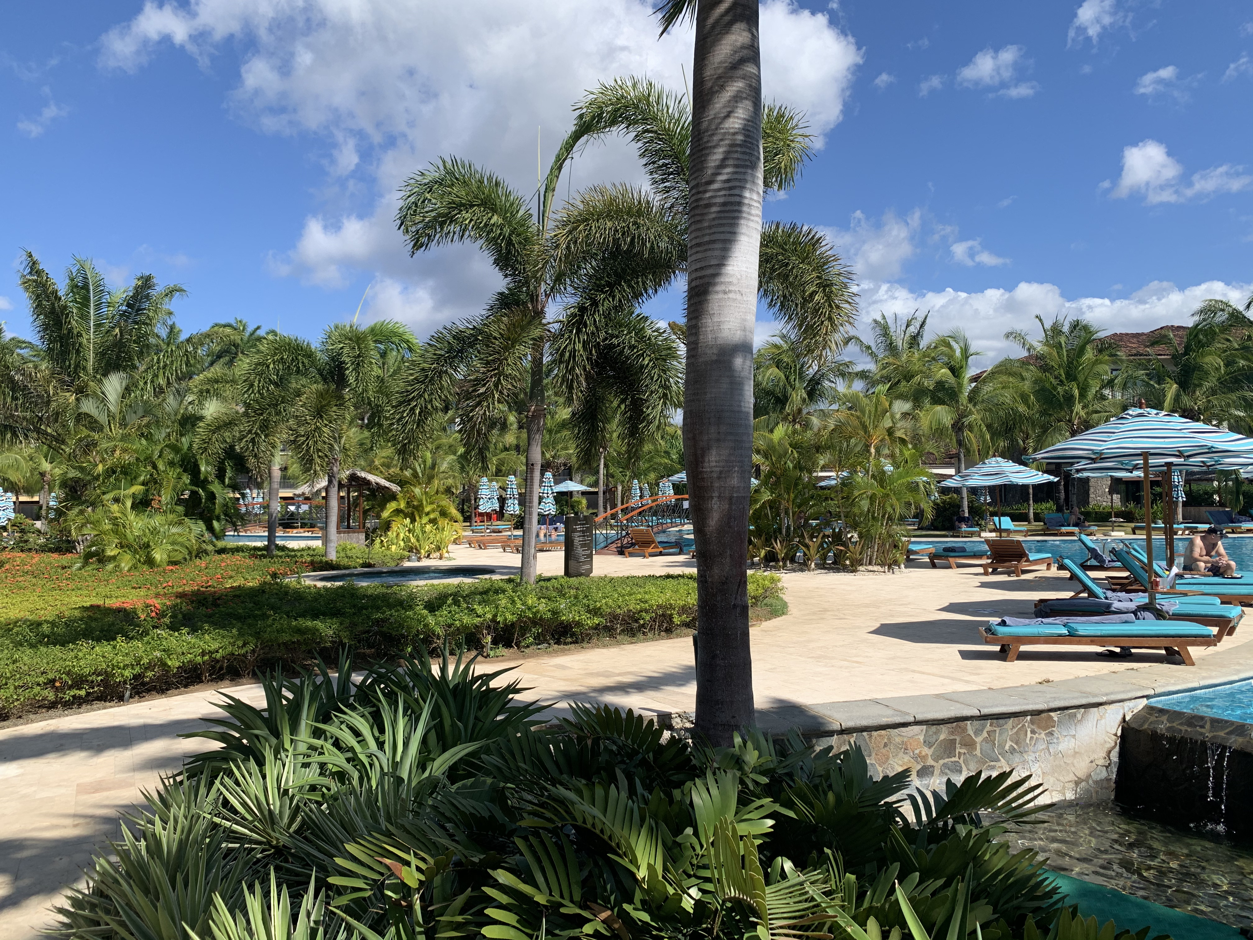 We walked down to the pool area and were stunned - it is likely one of the most attractive pool areas I had ever seen. The blue colors, the meandering pool itself with its huge size, and the green palm tree backdrop seemed the perfect incarnation of a holiday feel. At 90+ degrees the benches looked more than inviting. Most benches come with an umbrella as well. It can get windy at times during February (and staff may ask to not open any umbrellas) but on our first day that wasn't an issue. We loved lounging at the pool despite a number of rather raucous guests trying to spoil our little paradise. The pool area is a gem that few hotels or resorts can pull off.
