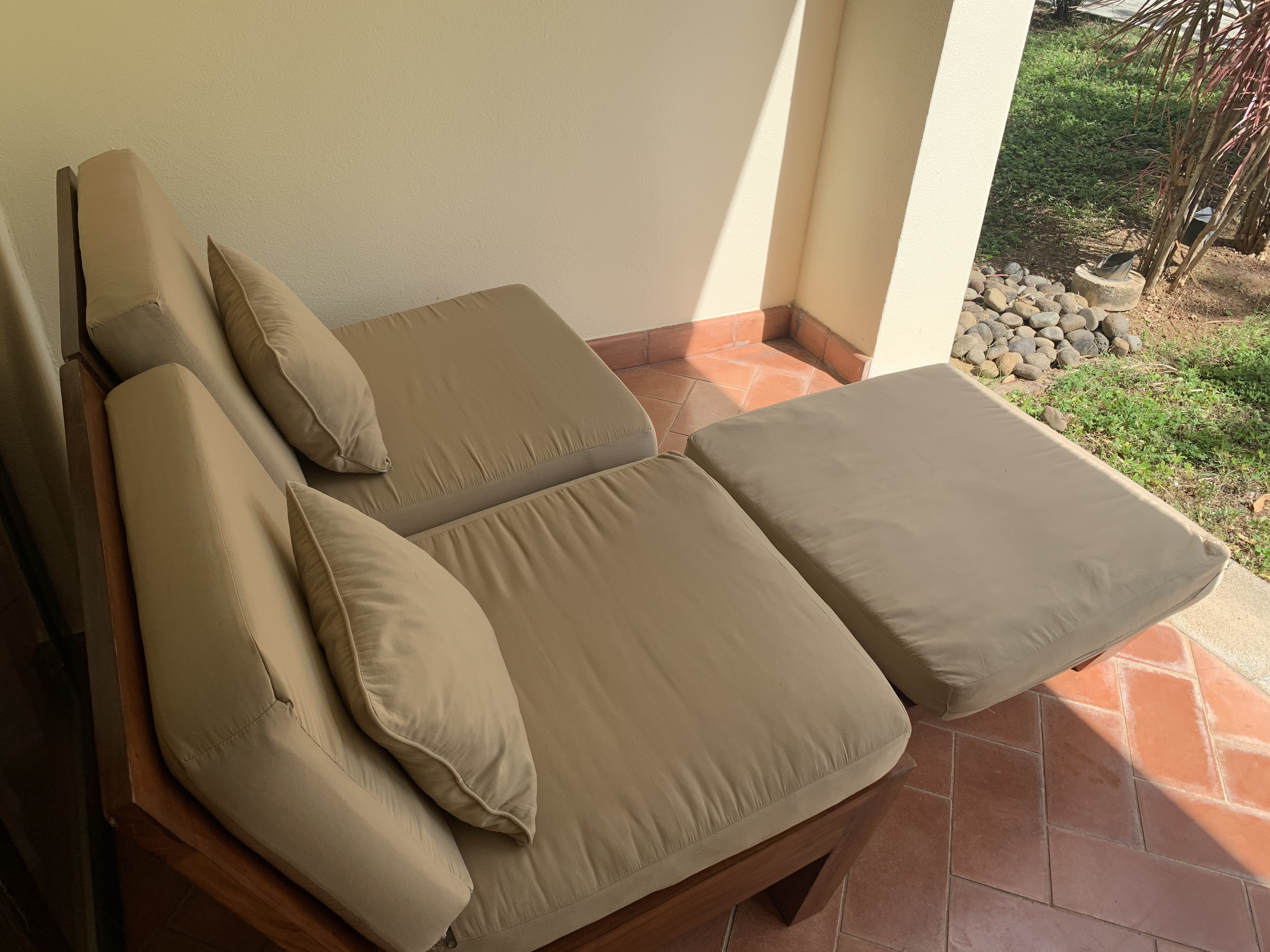 The room opened up into the gardens and there was a small patio with chairs to enjoy the garden area.