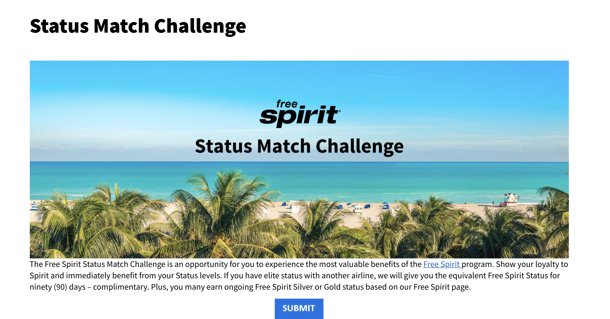 Spirit Airlines provides a generous free status match program that allows you to match your current elite status with another airline and start at an elevated level with Spirit. Spirit currently matches the following elite status to the Gold Tier: