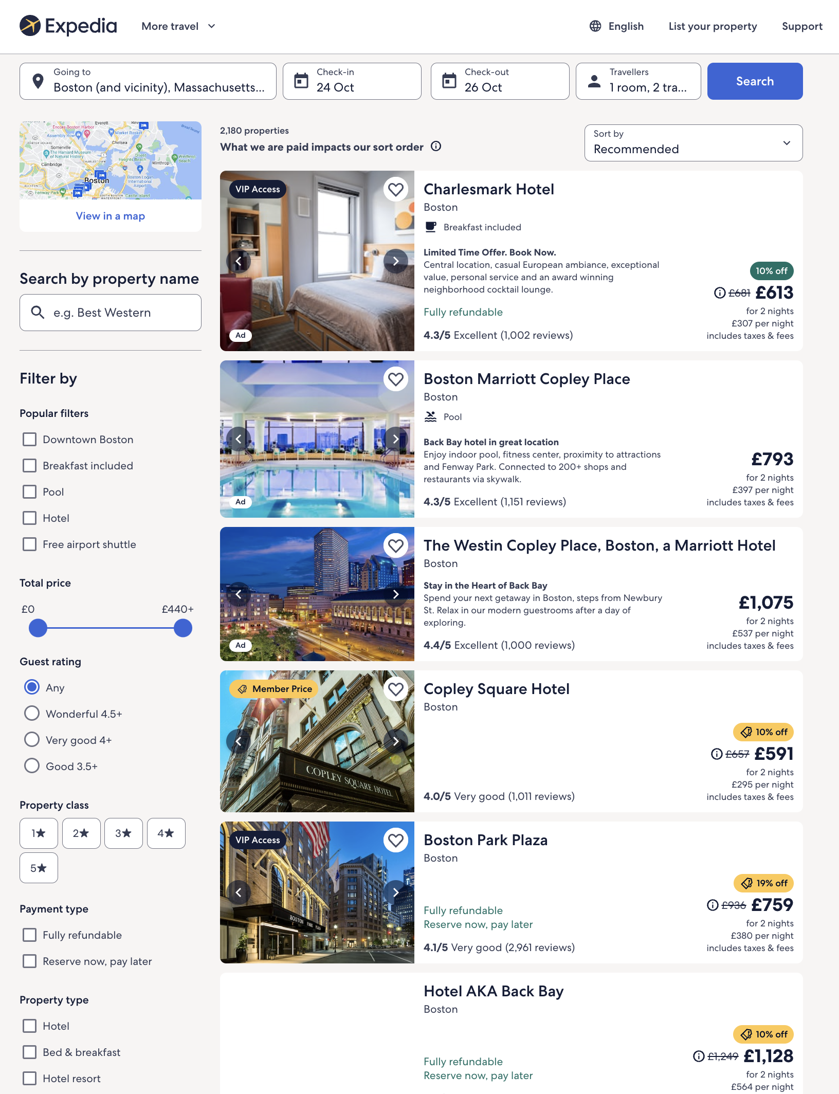 For travelers, there is a huge benefit to using an OTA for your next trip. OTAs often list hundreds, if not thousands, of options, allowing you to quickly and simply compare prices and offers. Many, like Expedia, have intelligent filtering offers that allow you to hone in on exactly what you want. When it comes to hotels, you can choose from options such as those offering inclusive breakfast, places with pools or spas, and those which allow you to bring pets, for example.