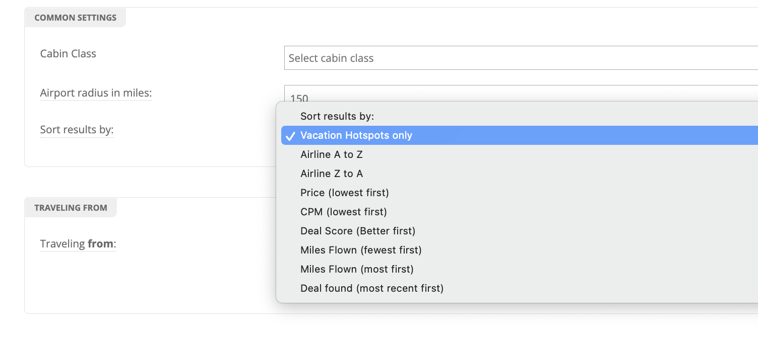 Let’s say we’re living in California, with relatively easy access to a vast number of international airports. We want to go somewhere warm in the winter, but aren’t too limited on destinations or dates at this stage. Let’s set LAX as our nearest airport, but with the flexibility to travel to more airports nearby – a radius of 150 miles should do it.