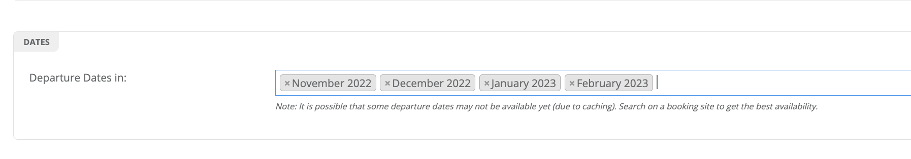 We want somewhere warm, so let’s go ahead and set the destination temperature to a minimum of 70 ℉. We also know we want to travel in the winter, so we’ll select all the months between November and February for our trip.